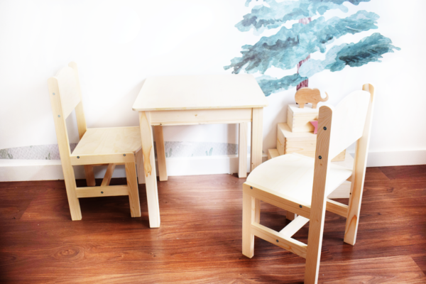 Tanto la mesa, como la sillita están hechas de madera maciza